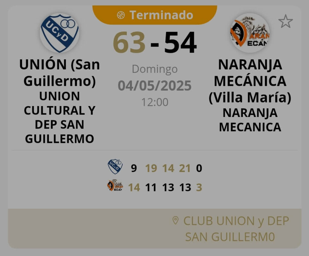 Nuestro equipo jugó vs. el equipo de Unión Cultural y Deportivo SAN GUILLERMO a las 13:30hs del día Domingo 4/5/2025 en el Estadio del Club Unión CyD de San Guillermo (Sta. Fe).